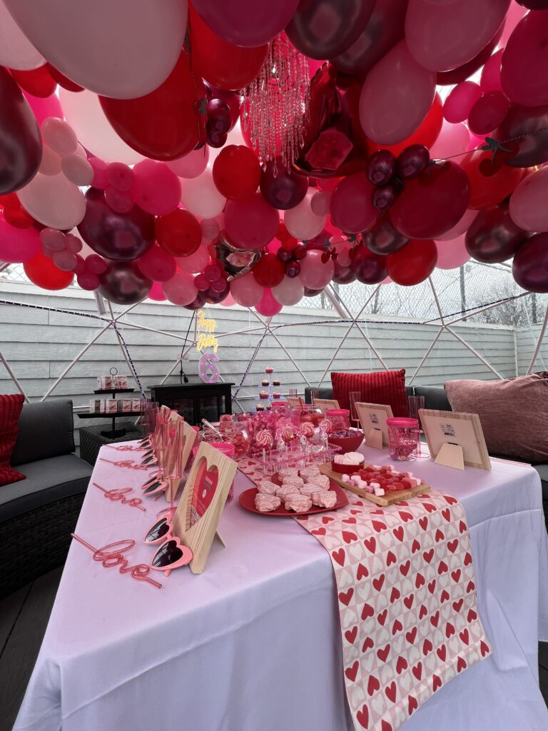 Join us for a whimsical and sweet 6th Birthday party! Embracing the magic of the season with a Valentines Day. Twist , we decked the igloo with heart- shaped decorations, fluffy blankets. The girls feasted of sweet treats while crafting a valentines themed activity. It was a day filled with laughter, love and plenty of sweet treats. Feautured on Bad Moms Long Island.